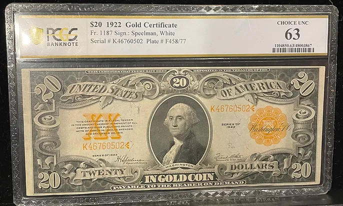 How to Authenticate a 1922 $20 Gold Coin Large Note PCGS MS63